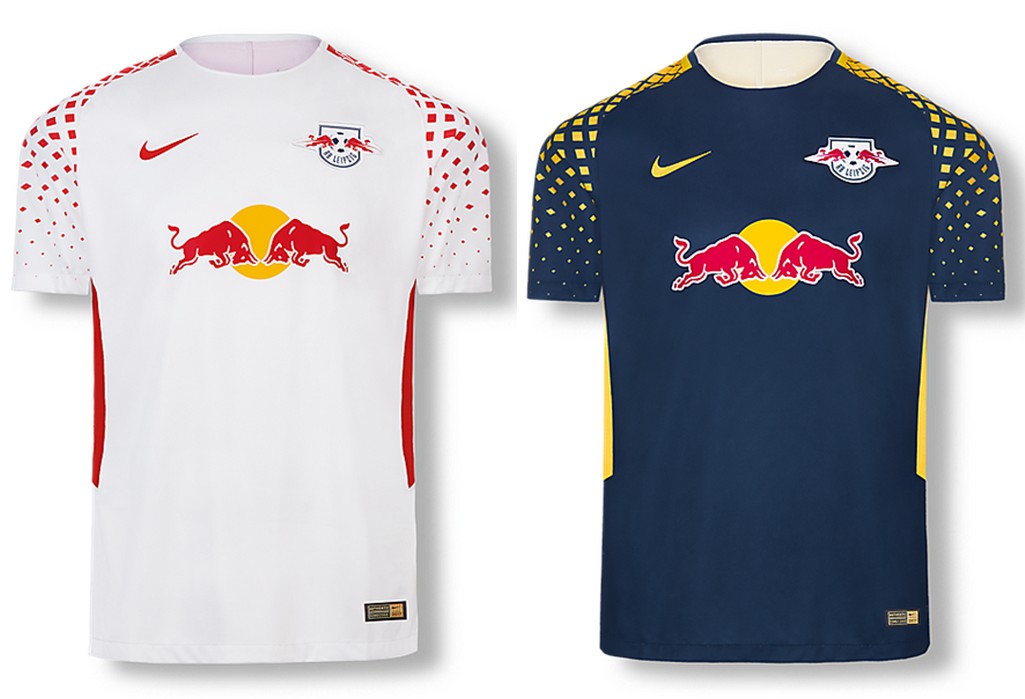 Förra säsongens sensation i Bundesliga Red Bull Leipzig kommer med sina nya tröjor. Red Bull har ju köpt upp klubblag i Brasilien, USA, Österrike och Tyskland, och tyvärr så ser deras tröjor likadana ut. År från år. Det Nike har gjort lite annorlunda är att göra en typ av rutmönster på ärmarna, och det köper jag. Fast färgerna är alltid de samma. Vit hemmatröja och mörkblå bortatröja.
