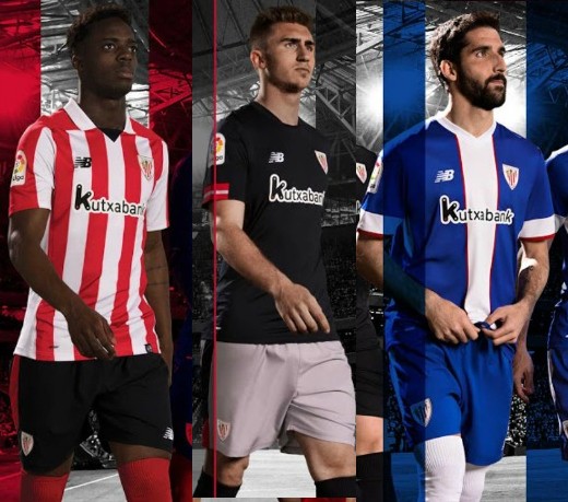 New Balance ansvarar även för Athletic Bilbaos kollektion. Kör man i randigt kan det vara svårt att hitta på något extra, och det har man inte gjort med hemmatröjan. Svart och grått borta och en blå-vit-randig tredjetröja. Hyfsat, men inte mer.