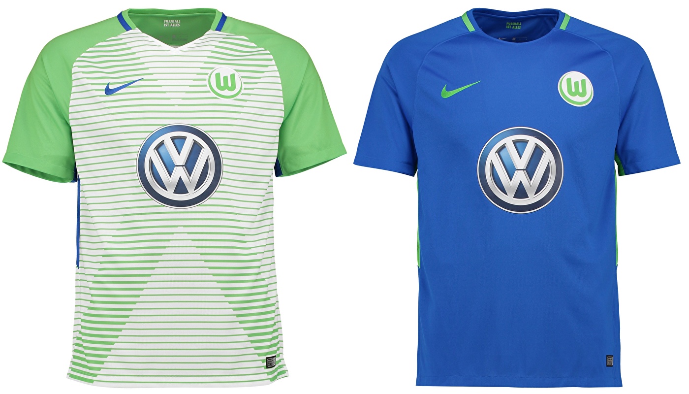 Vitt och grönt är Wolfsburgs färger och de har skiftat mellan dessa två färger i sina förstatröjor genom åren. Till kommande säsong har Nike tagit fram en modell där båda färgerna framträder. Även krysset på mitt fram har funnits med tidigare. Denna tröja är en av mina favoriter om jag skulle rösta fram bästa nya fotbollströja 2017/18. Det roligaste man kan säga om bortatröjan är att den är blå!