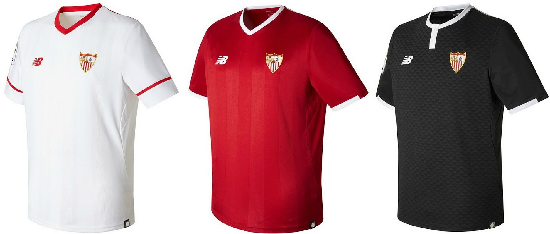 Sevilla håller sig till New Balance ännu en säsong. De behåller Sevillas klassiska hemmavita och bortaröda. Tredjetröja är svart, men de har faktiskt lite mönster i tygen. Den av de tre tröjorna som de lyckats bäst med anser jag vara tredjetröjan.