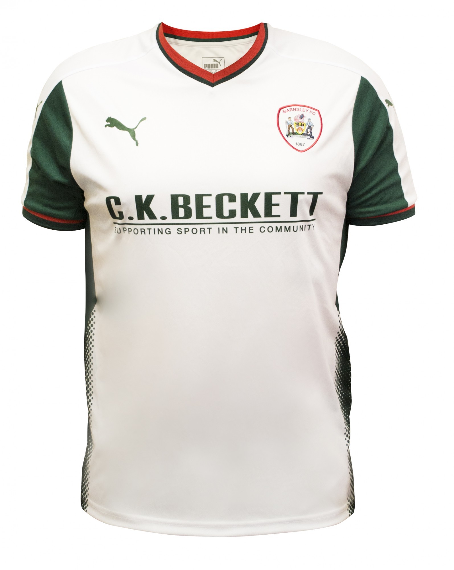 Puma har gjort Barnsleys utrustning i tre år. Märkligt att de inte valt en svart bortatröja. Lite svarta finns de på ärmar och sidorna. Det är Pumas "prickränder" som här passar rätt så bra mot den vita tröjan. Då Barnsleys huvudfärg är rött så har man fått in det i halskrage och på ärmen. Det gör tröjan lite gladare.