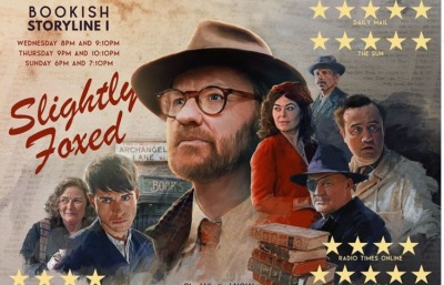 Kvällen avslutades med en ny engelsk historisk deckarserie. Den finns på SVT Play och heter ”Bookish”. På svenska har det blivit ”Mister Books mysterier”. Året är 1946 och Gabriel Book, ägare till ett antikvariat under efterkrigstiden, förlitar sig på sin enorma boksamling för att lösa förbryllande fall. Han har ett brev undertecknat Churchill som ger honom tillträde till polisens arbete och hjälper dem att lösa diverse fall. Fast det är lite hemlighetsmakeri och Mr Book verkar ha sysslat med annat än att driva en bokhandel under kriget. En episod är på två 50-minutersavsnitt och vi såg de två första igår. Slightly Foxed hette avsnitten och de har 7,3 på IMDb. Det skulle jag också ge serien.