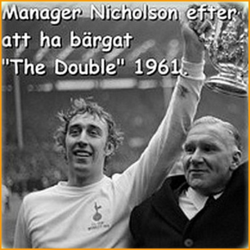 Bill Nicholson höll sig till Tottenham Hotspur i hela sitt liv. Från 1938 till 1955 spelade han 314 matcher för laget. Det blev till en landskamp för England också men det var enda gången han lämnade Tottenham. 1958 fick Spurs manager Jimmy Anderson sparken och idag tillträdde Bill Nicholson som ny manager. På eftermiddagen var det match mot Everton och man får säga att debuten som manager gick ganska bra. Tottenham vann idag 1958 med 10-4. 1961 firade Bill och hans lag sin största triumf genom att vinna dubbeln, ligan och FA-cupen. 1974 förlorade Tottenham UEFA-cup finalen mot Feyenoord och då sa Bill upp sig som manager för laget han tillhört i 36 år.