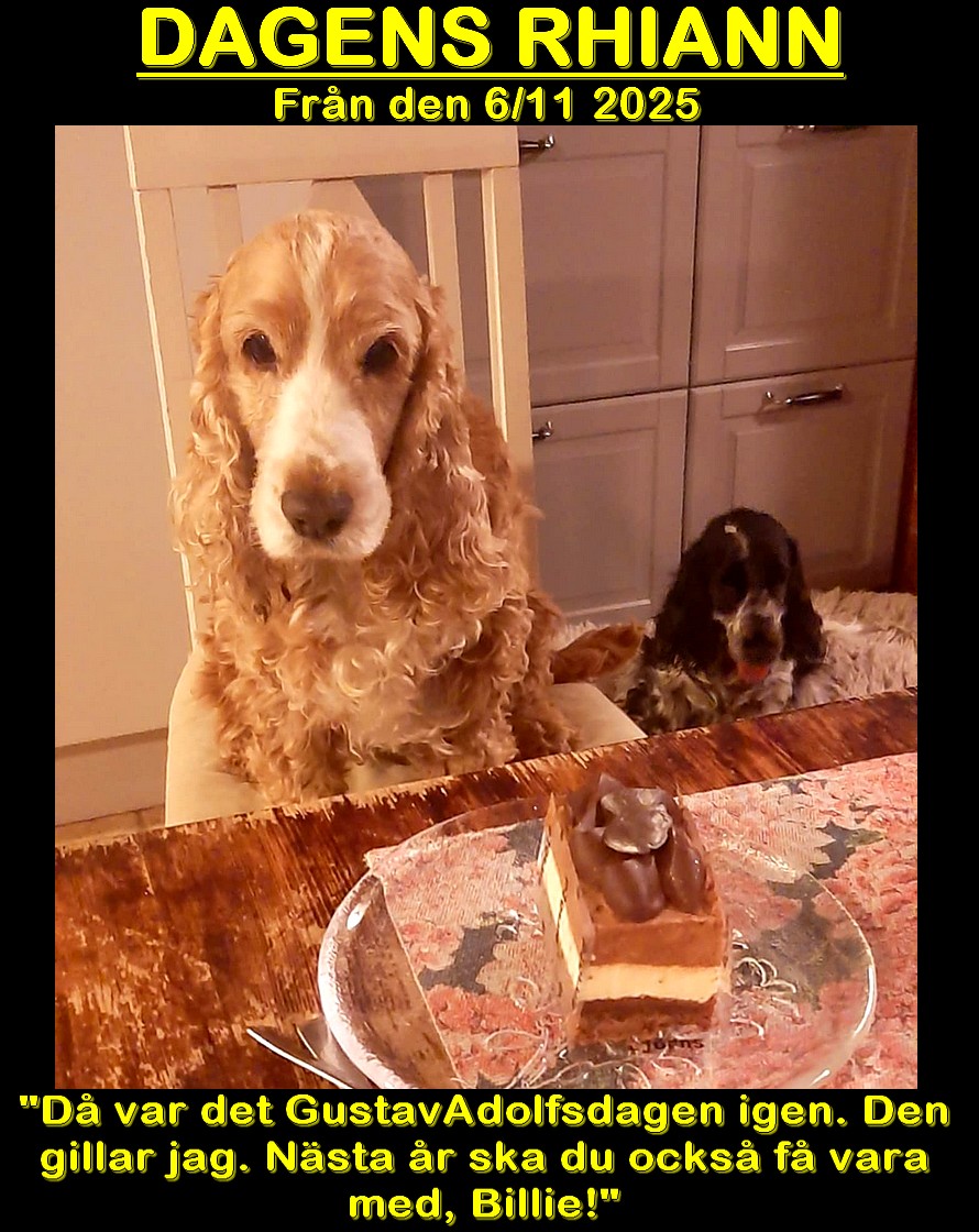Denna måltid hann vi med innan gästerna kom. Det var nämligen de som skulle få njuta av bakelserna som är så speciella den 6:e november. Det speciella är att de kan se ut hur som helst bara de har ett chokladhuvud föreställande Gustav II Adolf. Björn hade gjort bland de bättre Gustav Adolfsbakelser vi haft. Vår granne fick en bakelse och de övriga sex var till familjen och tre gäster. Efter fikat kom Hitster Music Bingo fram. Igår hade jag inte lika stor tur och skicklighet. En av gästerna hade många rätta svar, men lyckades aldrig få Bingo innan han var tvungen att lämna oss. Vi andra spelade vidare och de två omgångar vi klarade av vanns av samma person.