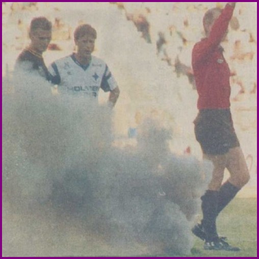 Under andra Boerkriget i Sydafrika spelades det idag 1899 en fotbollsmatch mellan Gordon Highlanders och British Colony of Natal. Efter bara två minuter av matchen kom en bomb in över läktarna och exploderade i den ände av planen där som tur var inga spelare befann sig. Det var boerna som sänt iväg missilen. I förvirringen passade Gordon Highlanders på att göra mål. Efter matchen protesterade Natal till FA. Det kom ett svar att det inte stod något i fotbollsreglerna att man inte fick göra mål om en bomb kreverar på planen. Jag tror inte det är inskrivet i regelboken än. Fast under de senstre åren så har det blivit allt vanligare med bomber på fotbollsmatcher. Men nu bryter oftast domaren, så några liknande mål som det 1899 lär det inte bli mer.