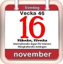 TEMADAG: Internationella dagen för tolerans. Mångkulturella matdagen. Världsdagen till minne av trafikoffer.