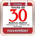 TEMADAG: Första advent. Andersdagen. Guldsmedens dag. Internationella dagen till minnet av offren för kemisk krigsföring. Kåldolmens dag. Kattens dag.