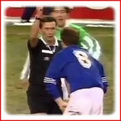Glasgow Rangers och Hibernian spelade idag 1995. I Rangers fanns vid denna tidpunkt en ganska kontroversiell spelare, Paul Gascoigne. För en gångs skull var det inget fult som renderade honom i en varning utan den totalt humolöse domaren Dougie Smith. Dougie hade tappat sitt gula kort och Gazza plockade upp det för att ge tillbaka till domaren. Han kunde då inte låta bli att skoja och låtsades ge domaren ett gult kort. Då Gascoigne lämnade över kortet till domaren tackade han med att ge Gazza en varning på riktigt.