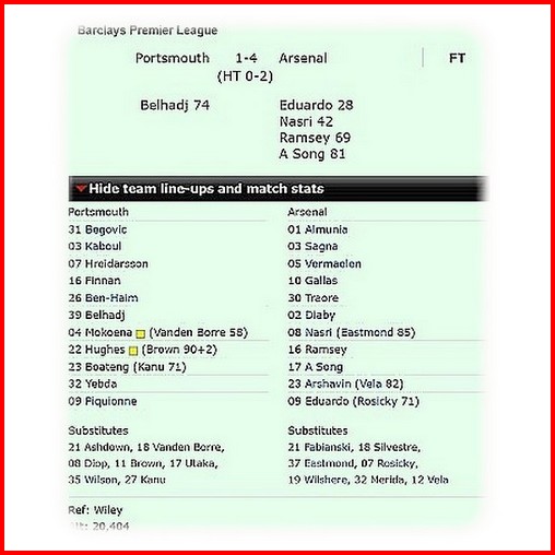 Portsmouth och Arsenal möttes idag 2009 i Premier League. Londonlaget vann borta med klara 4-1, men det som var unikt i denna match var att det var första gången i Engelsk fotbollshistoria som en ligamatch startade utan att det fanns en enda engelsman i startelvorna. Lagen bestod av sju fransmän, två algerier och en spelare var från Bosnien Hercegovina, Irland, Island, Sydafrika, Skottland, Ghana, Spanien, Belgien, Kamerun, Wales, Ryssland, Kroatien och Israel.
