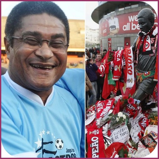 Eusébio växte upp i ett fattigt område i Lourenço Marques (nuvarande Maputo), huvudstaden i Moçambique, där han ofta lät fotbollen gå före skolan. Det skulle visa sig vara en riktig satsning. Hans fullständiga namn var Eusébio da Silva Ferreira. Då han föddes den 25:e januari 1942 kallades Moçambique Portugisiska Östafrika. Då hans fotbollstalang upptäcktes var det naturligt att han kom till Portugal och Benfica 1960. På 301 matcher för klubben gjorde han 317 mål. Han hjälpte även Portugals landslag att ta brons i VM 1966. Under den tiden var det ofta diskussioner om Pelé eller Eusébio var världens bäste fotbollsspelare. Eusébio var en bidragande orsak till att Portugal fick fotbolls-EM 2004. En annan kuriositet var att han den 12 juli 1971 var med en match i Malmö FFs A-lag då de i en vänskapsmatch mötte Moskvas stadslag på Malmö stadion. Matchen slutade 2-2 och Eusébio gjorde ett av MFFs mål. Men idag 2014 orkade inte Eusébios hjärta med längre och han avled. han var då så stor i Portugal att regeringen utlyste tre dagars landssorg.