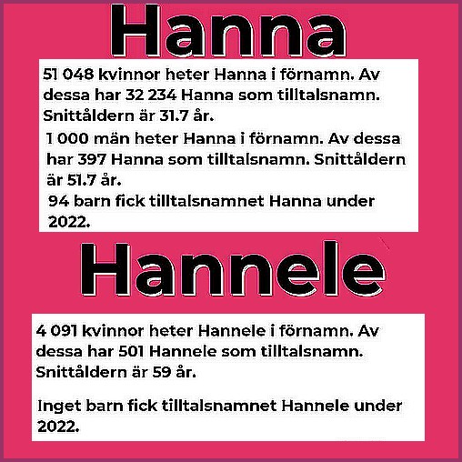 NAMNSDAG: Hanna och Hannele.