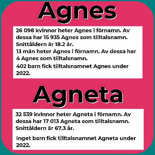 NAMNSDAG: Agnes och Agneta.