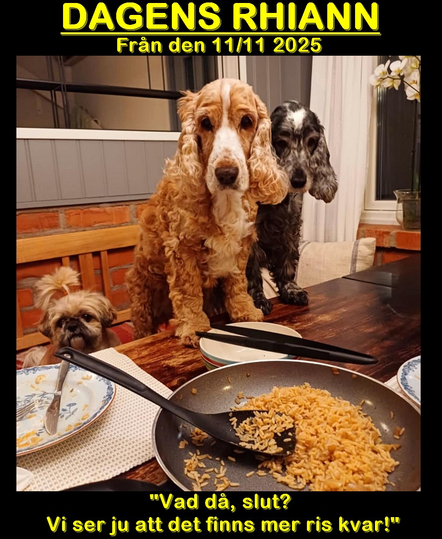 Hemma på Päronvägen så var det matlagning för hela slanten. Mat till hundarna; kycklinglårfilé, potatis och grönsaker. För oss människor blev det vegetariskt, även för mig; ”Grönsakspilaff med rostade grönsaker & halloumi”. Det blev en maträtt som vi tre i familjen åt tillsammans. Dottern som jobbar som tandläkare slutade i rimlig tid igår. Idag ska den dottern också åka till Stockholm. Dock ska de inte vara på samma ställe då båda är där å jobbets vägnar. Äldsta dottern som tandläkare och yngsta som sjukhusfysiker.