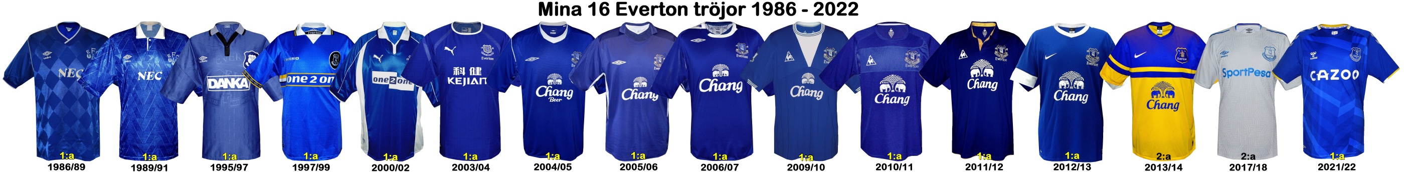 EVERTON 1986 - 2022 16 tröjor