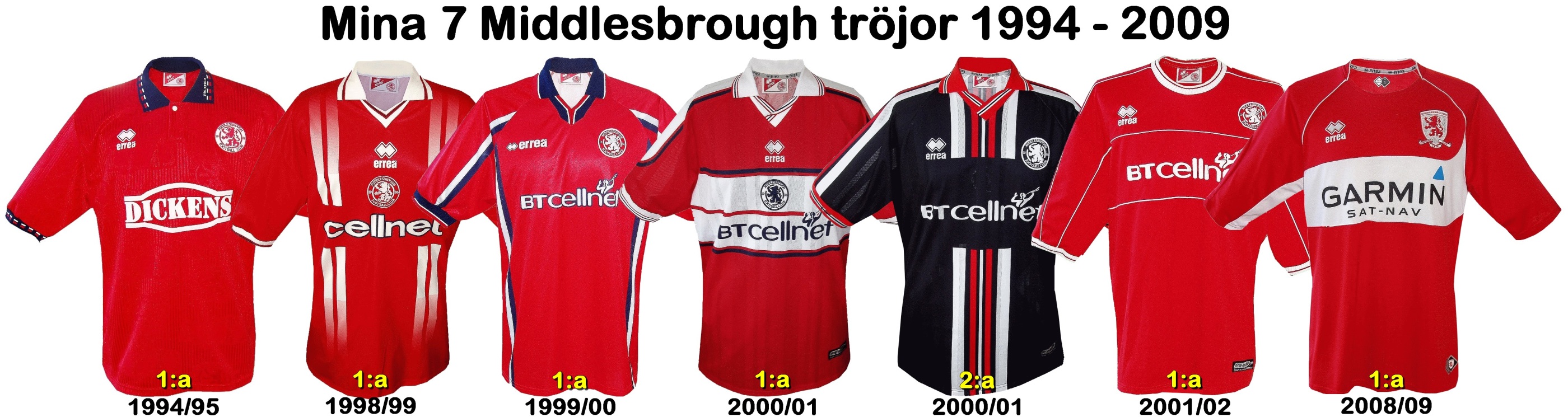 MIDDLESBROUGH FC 1994 - 2009 7 tröjor