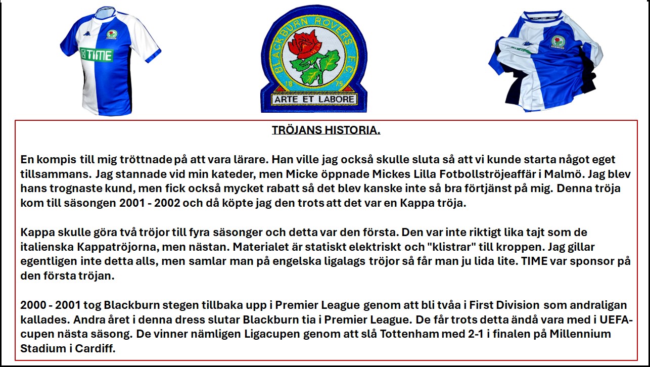 Blackburn Rovers 1992 - 2012 9 tröjor