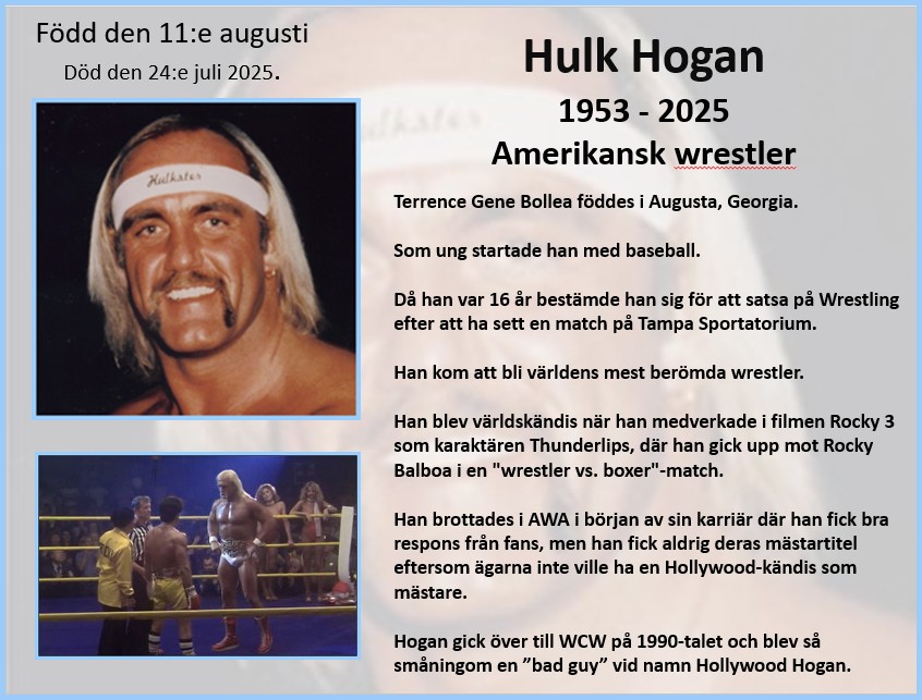 2014 – Robin Williams dog 63 år gammal efter att ha begått självmord genom hängning. Han var en amerikansk skådespelare, ståuppkomiker, filmproducent och manusförfattare. Han blev känd för sin roll som utomjordningen Mork i TV-serien Mork & Mindy.